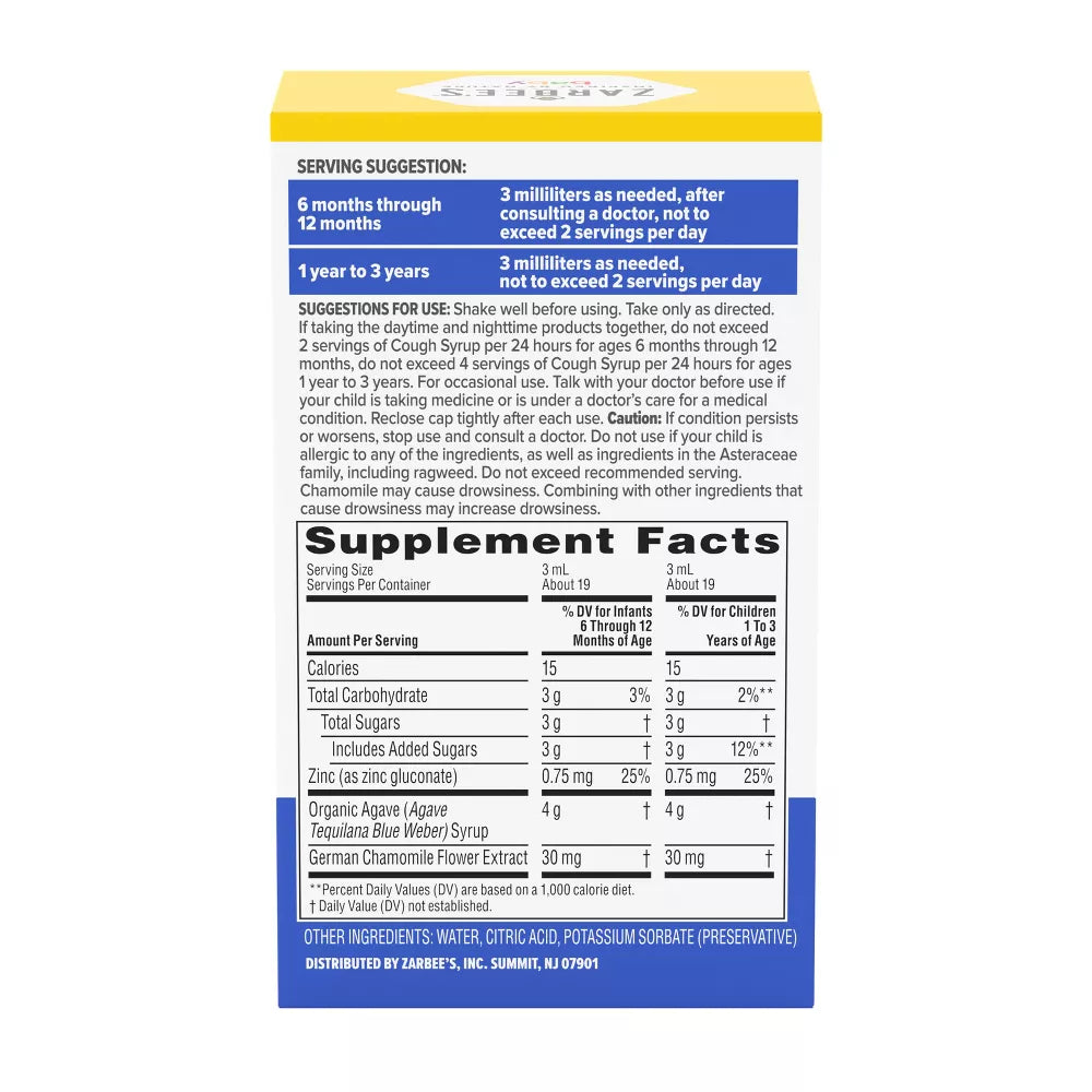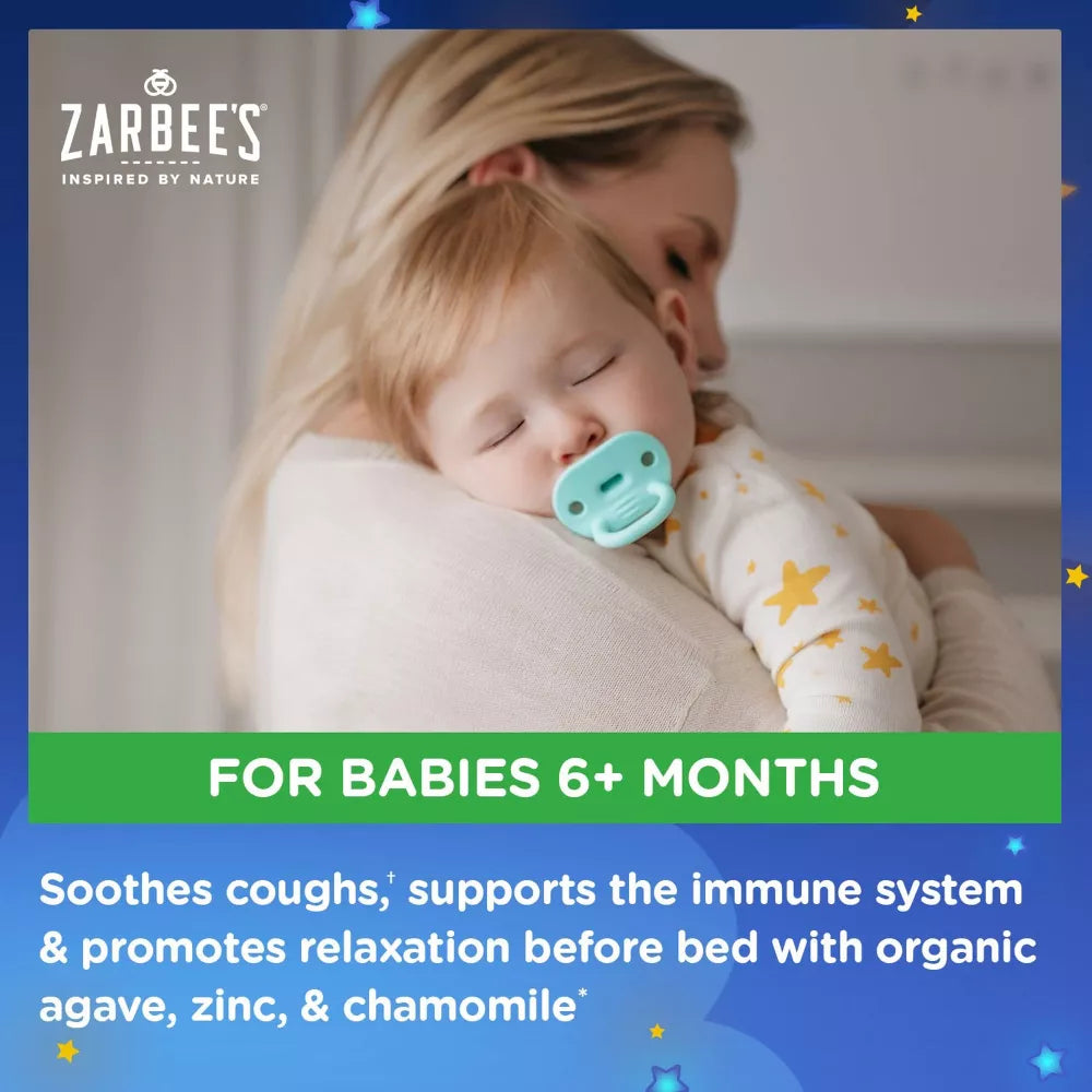 Jarabe para la tos nocturna Zarbee's Baby + Apoyo inmunitario con sabor a agave natural para bebés de 6 meses o más