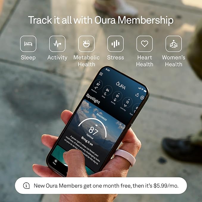 - Diseñado para un uso ininterrumpido: el diseño actualizado del Oura Ring 4 es más cómodo, se ajusta mejor que nunca y es resistente al agua. El primer anillo inteligente totalmente de titanio combina una durabilidad excepcional con un tacto suave, incluso para pieles sensibles.