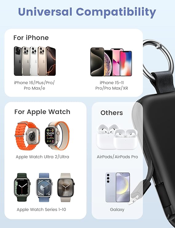 - Cargador de viaje portátil: diseño de llavero compacto y ligero, puedes poner fácilmente este cargador portátil en tu bolsillo o colgarlo en tu mochila, que es un gran compañero de viaje.